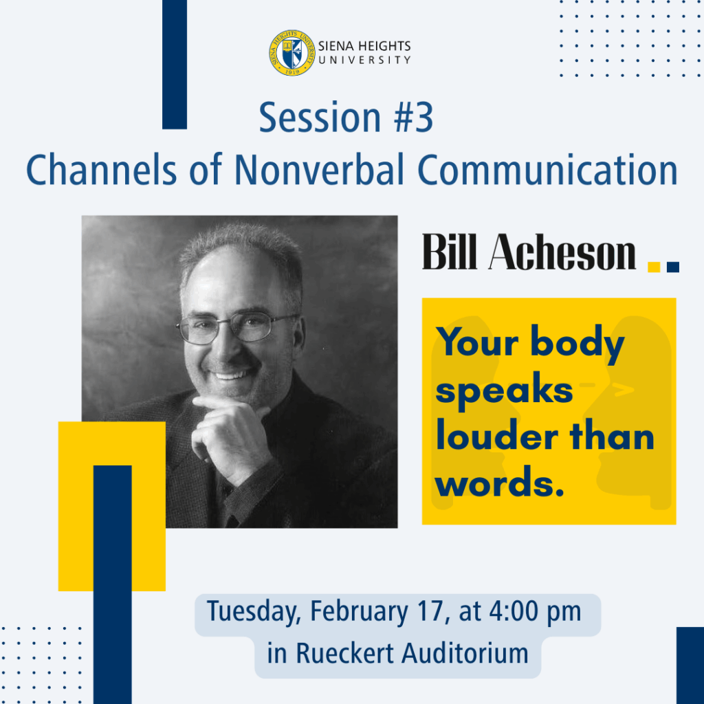 Sharpen your professional presence with BLT — Body Language Training, part of the Siena Heights Seminar Series led by Siena alumnus Bill Acheson ’80.