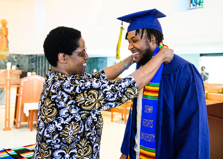 The Kente program was initiated at Siena Heights in 1992 by members of the main campus group SHAAKA, the Siena Heights African American Knowledge Association. Those African American students, now alumni, established the ceremony to honor their heritage, recognize the challenges of pursuing and completing a college education, and motivate undergraduates of color to persist in their studies through to graduation.